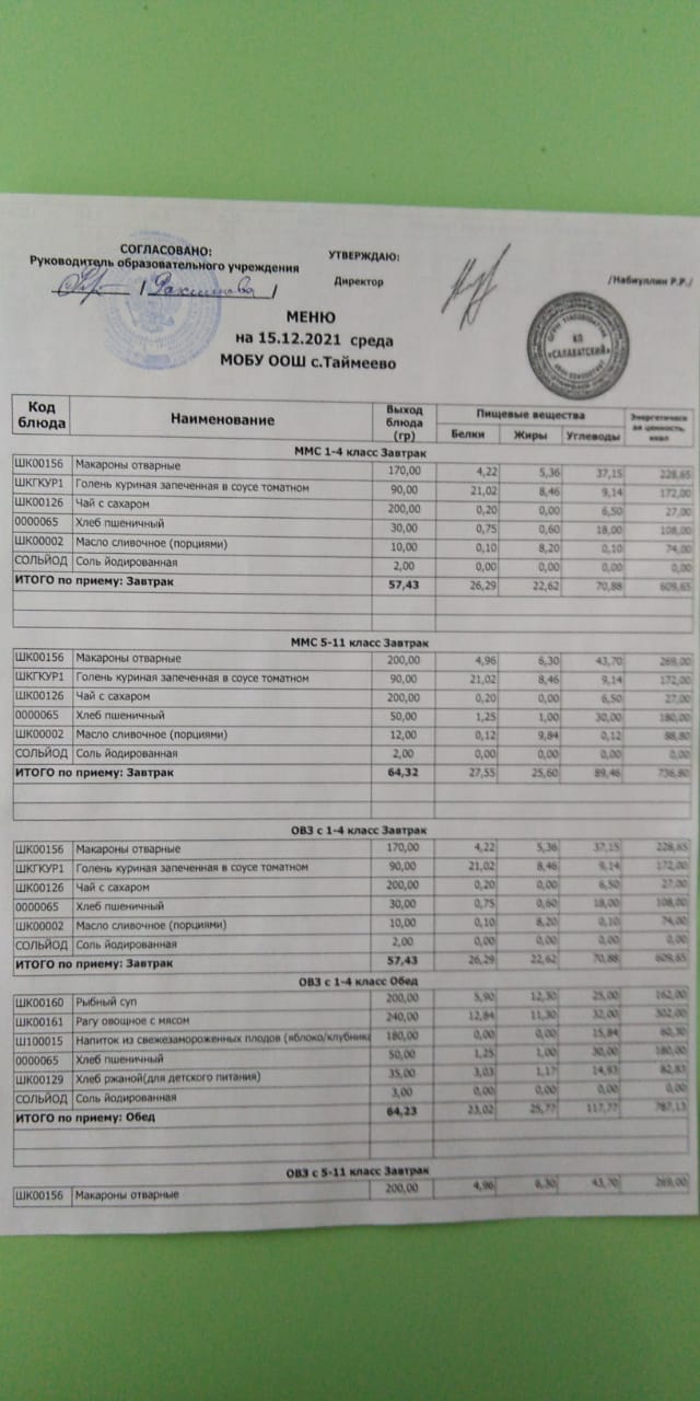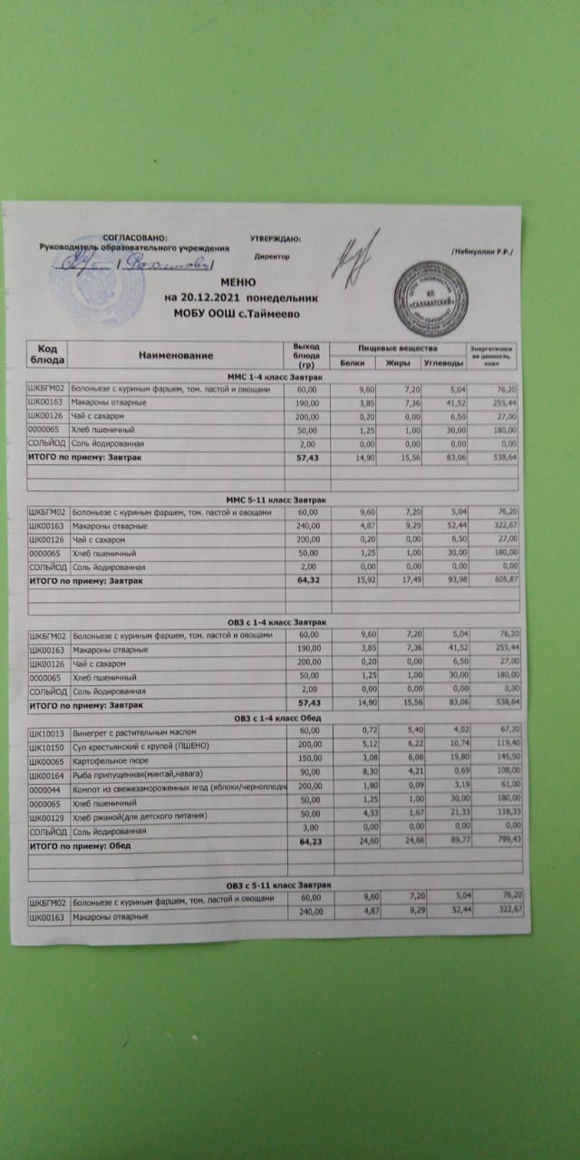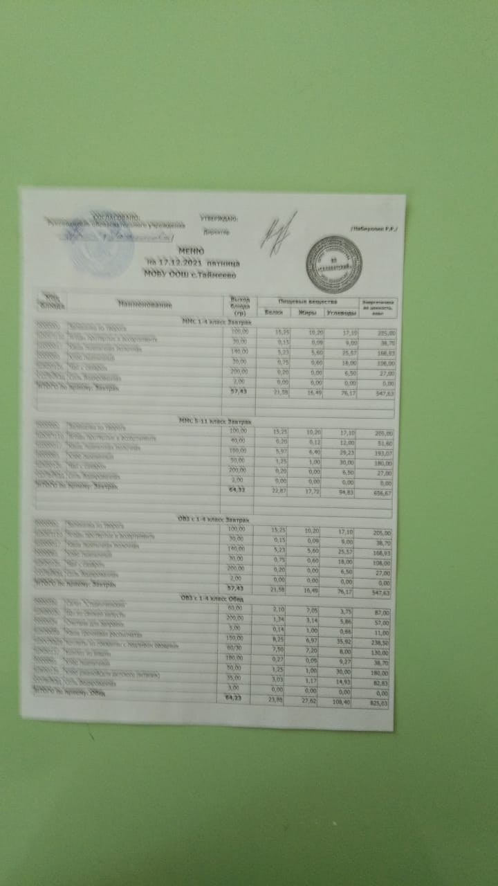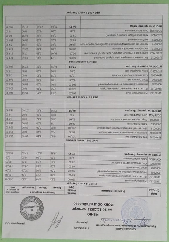 Стоимость школьного питания